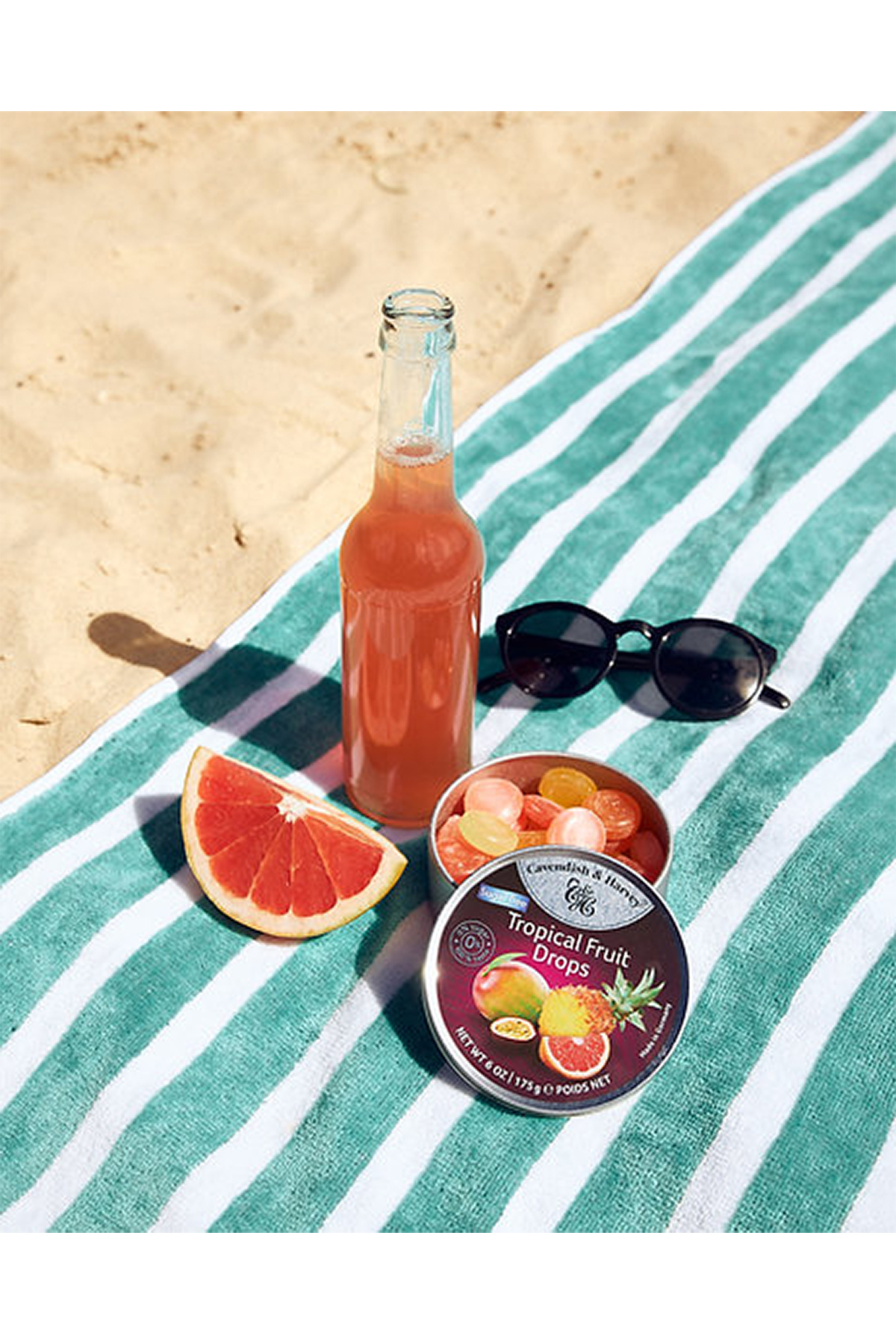 Şekersiz ama asla eksikliğini hissetmeyeceksiniz.; Calamondin-portakal, mango, greyfurt, çarkıfelek meyvesi ve ananasın egzotik karışımı, tropikal bir adada yapılan bir tatil buluşmasının anılarını çağrıştırıyor.; Gerçek meyve suyuyla yapılmış, pudra şekeriyle tozlanmış ve en yüksek kalitede tazelik için birinci sınıf altın bir teneke kutuda kapatılmıştır.