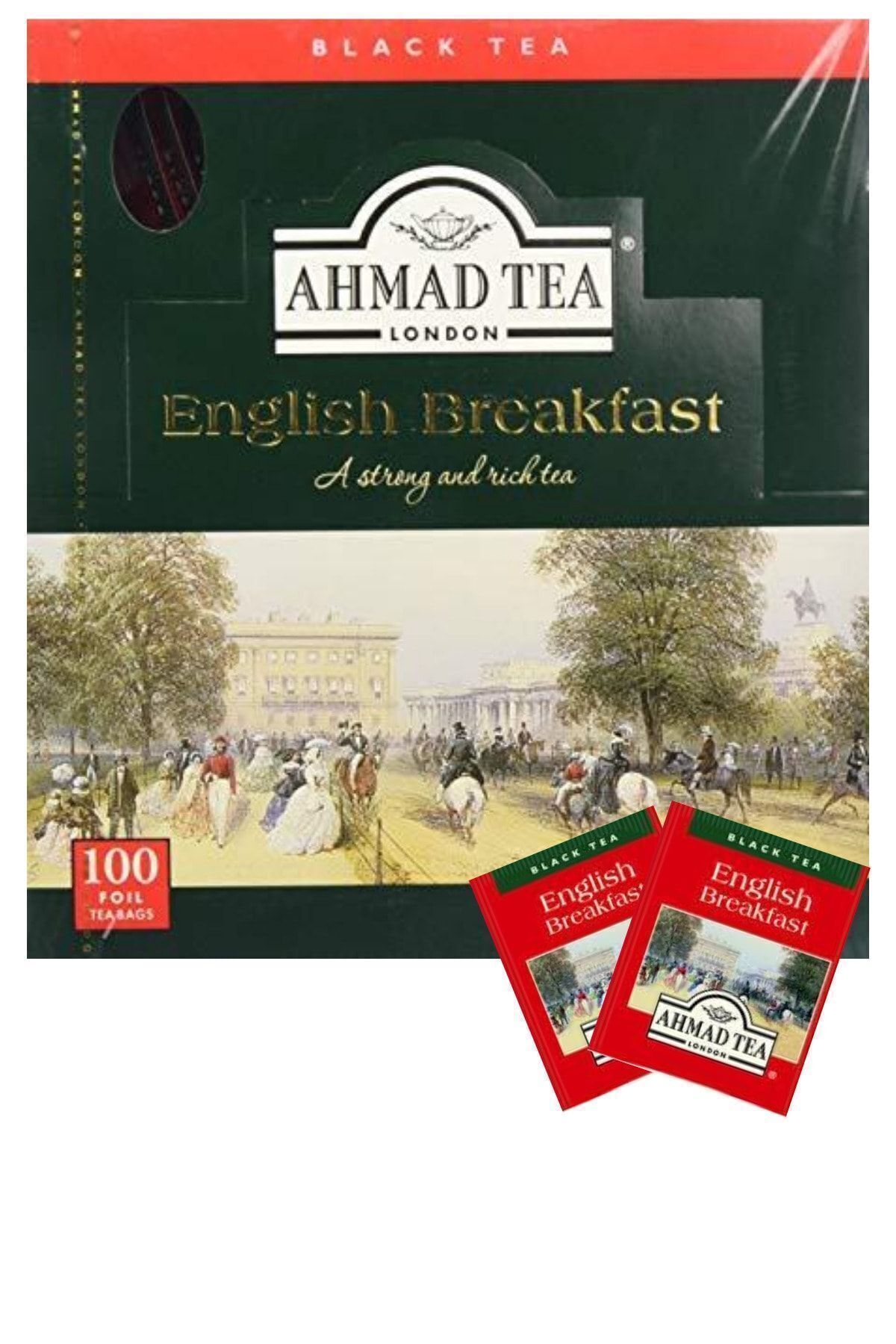 Güçlü ve tam gövdeli siyah çay, zengin, enerji veren bir fincan çaydır.; Özenle seçilmiş Assam, Seylan ve Kenya çayları kullanılarak ustalıkla harmanlanmıştır.; Ayrı ayrı folyoya sarılmış çay poşetleri, her bir demin lezzet dolu olmasını sağlar.; Carlo Bossily’nin klasik bir Londra sahnesi resmiyle resmedilmiş kutu.; Ahmad Tea’nin İngiliz Kahvaltısı harmanı, İngiliz çay tacındaki mücevherlerden biridir . Cesur, tatmin edici ve lezzetli bir şekilde pürüzsüz,günün her saatinde mükemmel bir fincan çay zevkini tadın.