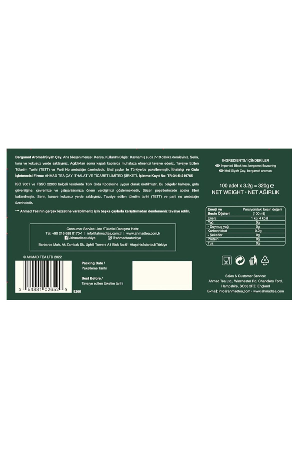Ahmad tea özel karışım 7-10 dakika 7 bardak çay % 100 yüz ithal çay Hafif bergamot aromalı çay İngiliz şekeri çayı