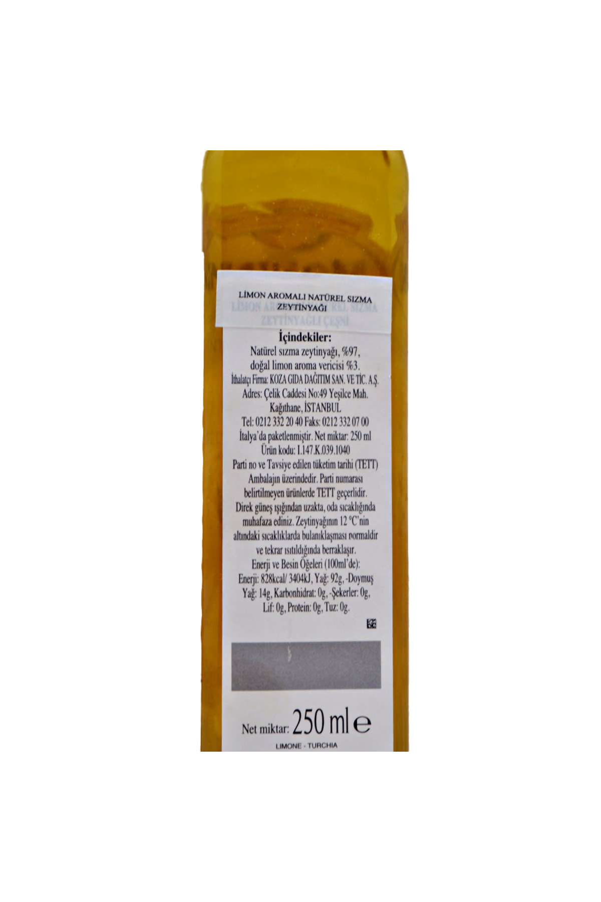 İçerik: Sızma Zeytinyağı, Doğal Limon Aroması.