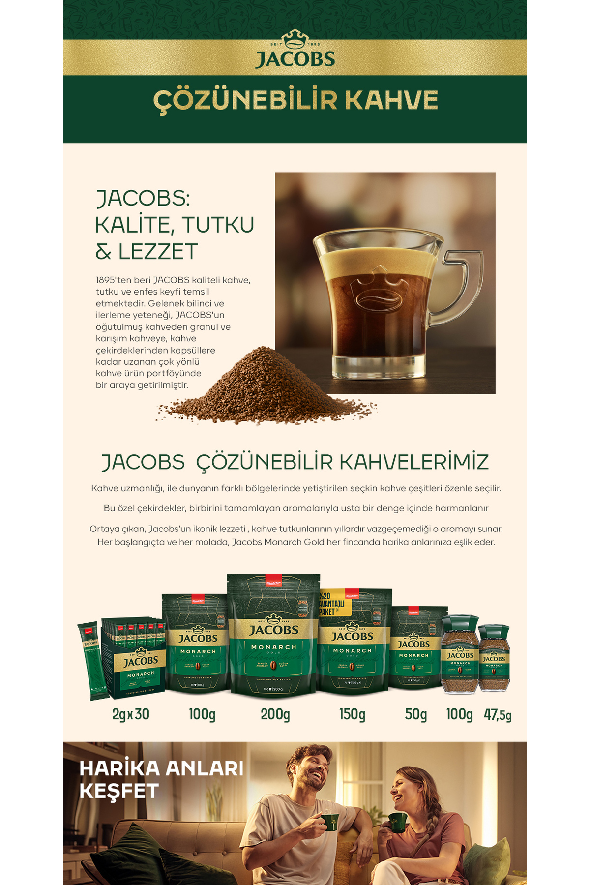 Jacobs Monarch Gold Kahve 400 gr (200 gr X 2) Ekonomik Paket;İkonik aromatik lezzet.;Dünyanın en iyi kahve çekirdeklerinden elde edilen kaliteli kahve.;Yoğunluk 2/5;Hazırlamak için sadece sıcak su ekleyin.