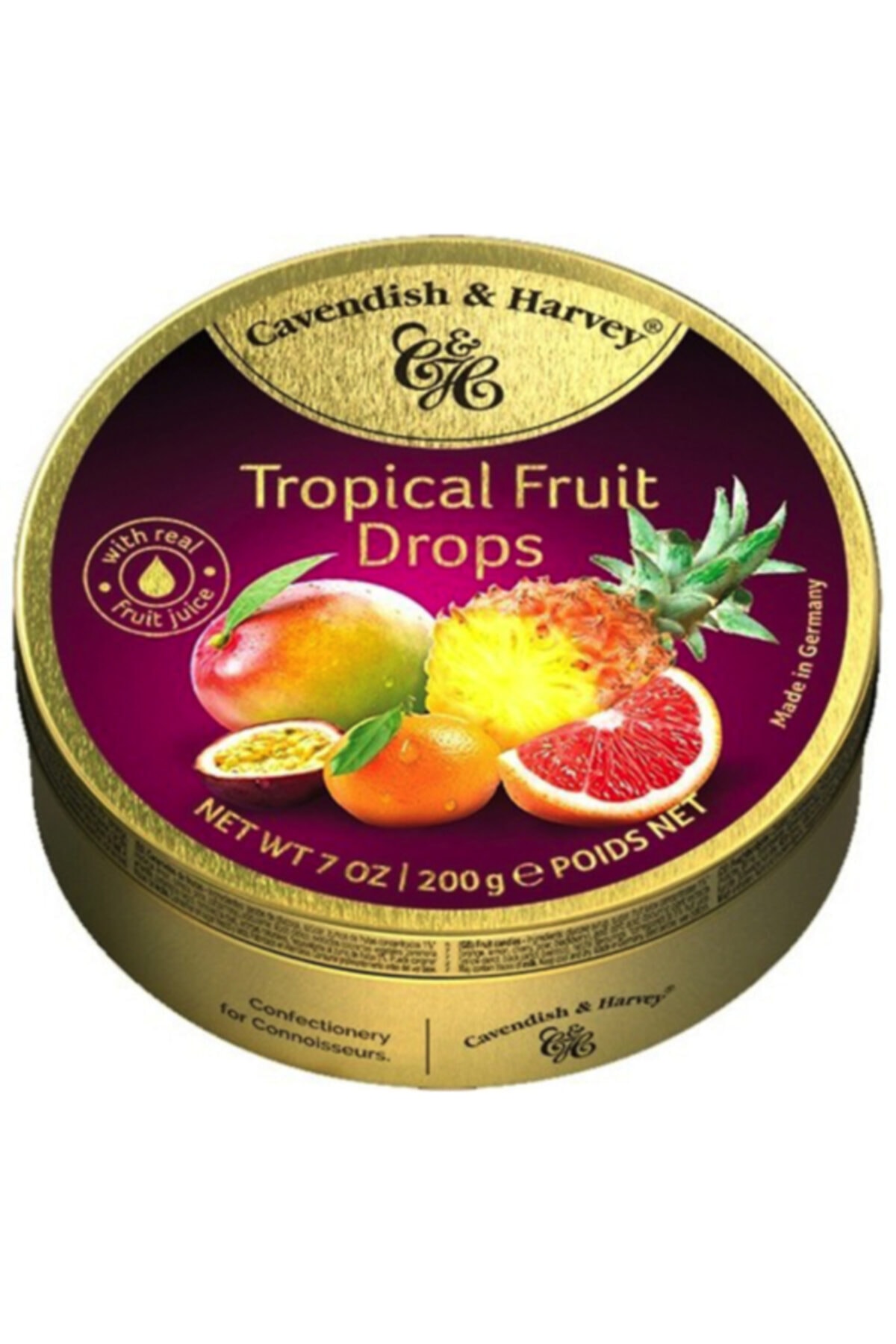 Cavendish harvey tropik meyve şekeri tropical fruit drops 200 gr Cavendish tropik meyveler içeren şekerleme markasıdır. ; Alman şekerleme markası şık metal kutusunda lezzetli şekerler içeren hediye şekerleme olarak iyi bir tercihtir. ; Içerisinde mango ananas vb meyvelerden ferahlatıcı bir etkisi bulunmaktadır.;